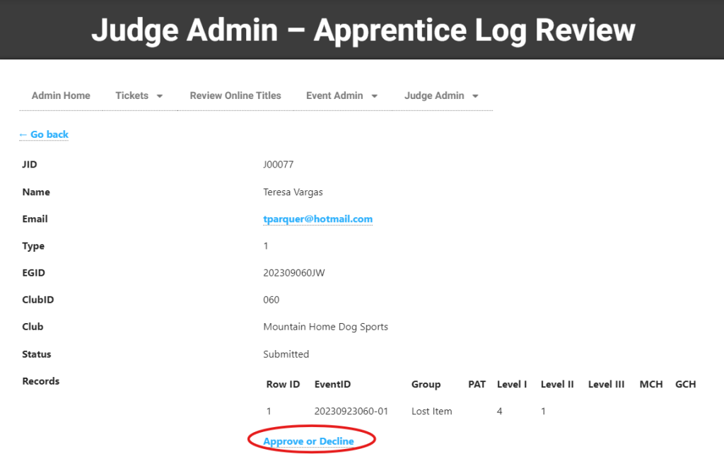 Once you review the entry, you may click “Approve or Decline”