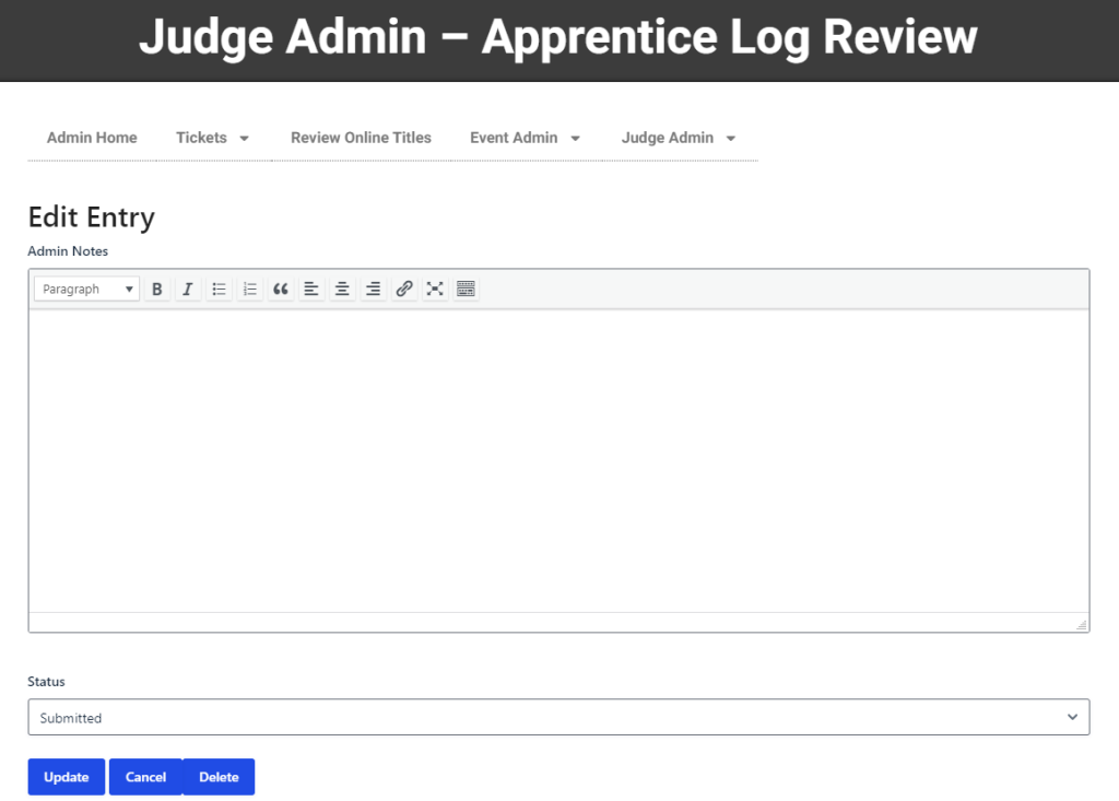Include any notes required. These notes are visible to the apprentice judge and NASDA Administration.
