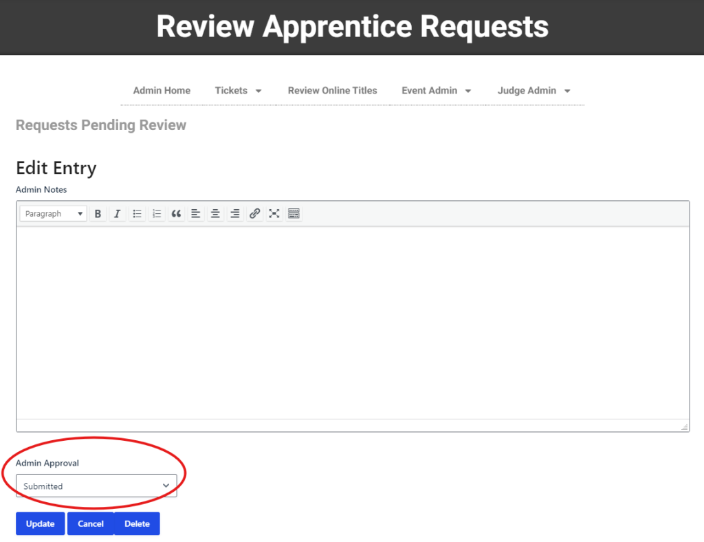 Add notes as needed. These notes are visible to both the apprentice judge and NASDA administration.