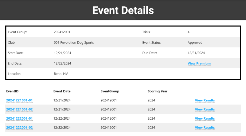The event details, including the Event IDs will be displayed for this EGID.
