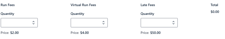Enter the quantity of regular runs and virtual runs. The system will automatically calculate late fees.